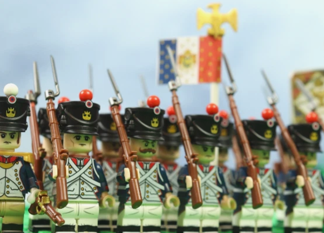 Napoleonic wars. French army. French fusilier soldiers - set of 5. Each of them goes with the muscket, headgear and a backpack.