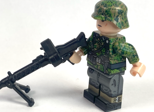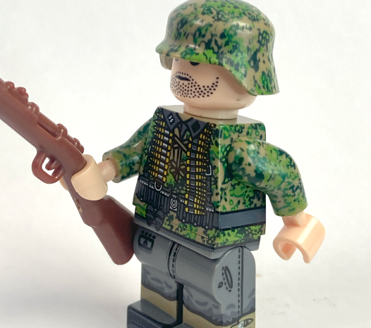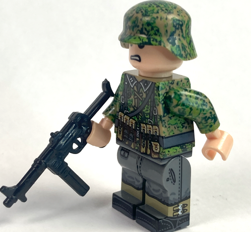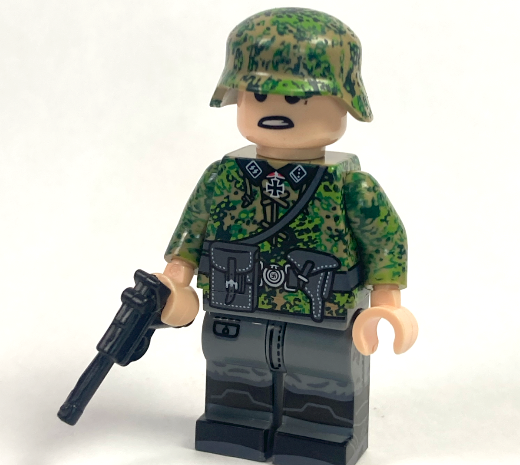 6 soldiers in a green Pea Dot 44, SS soldiers, each goes with the unique weapon. Amazing quality of printings, and there is even a radio man!!!